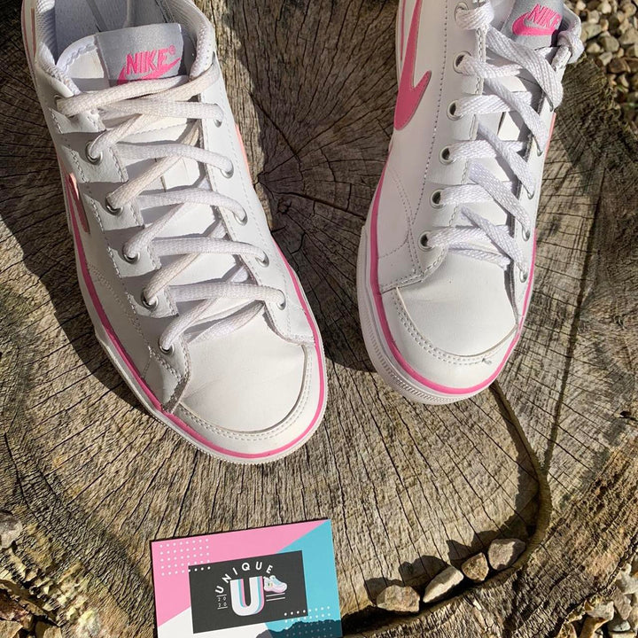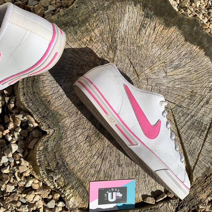 Nike White Pink Leather Retro Premium Rubber Sole
